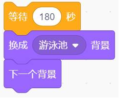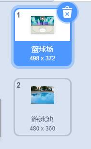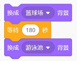 舞台的两个背景如下图所示,小猫每天先去篮球场打球3分钟,再去游泳池游泳。下面哪 个选项能正确表示运动场景变化?